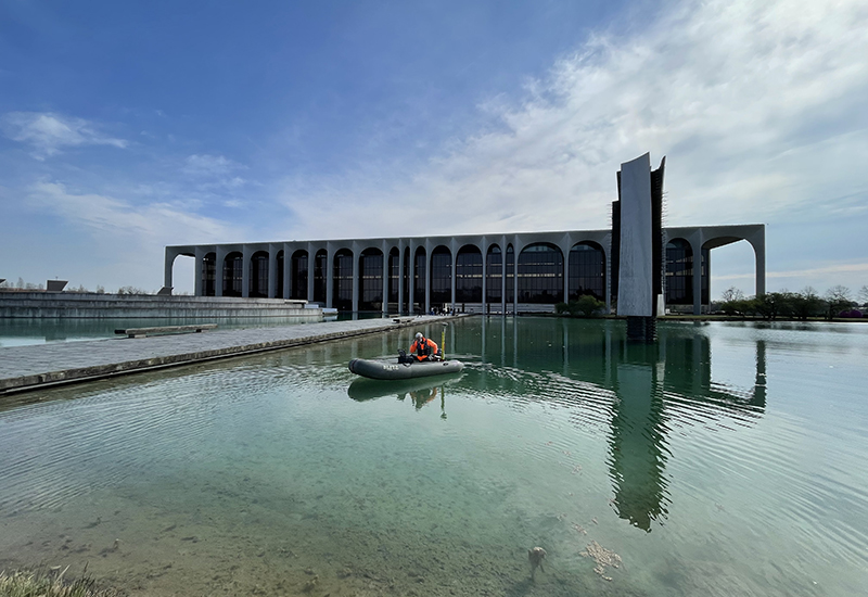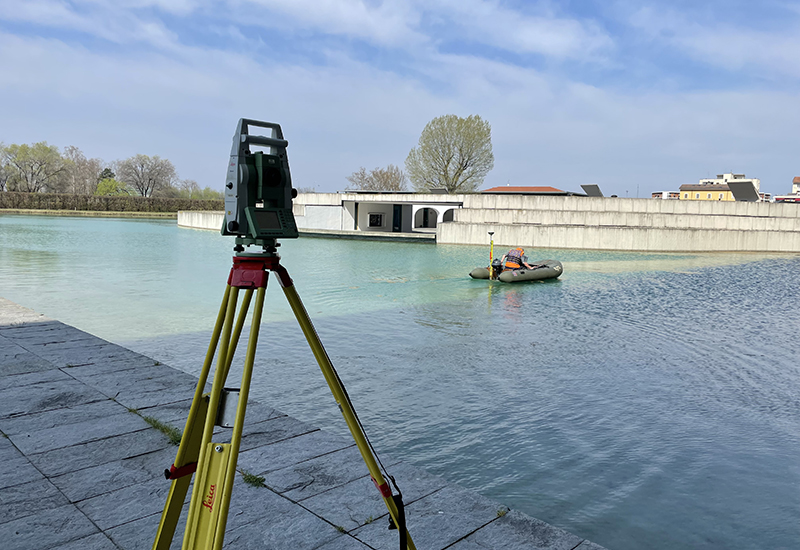 Rilievo batimetrico di lago artificiale, per la modellazione 3D del fondale. Strumentazione impiegata Gps, Stazione Totale, un natante con ecoscandaglio.